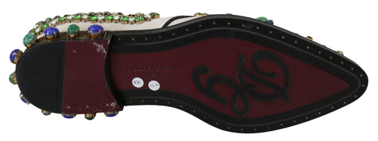 Dolce & Gabbana Elegant White Leather Dress Shoes With Crystals